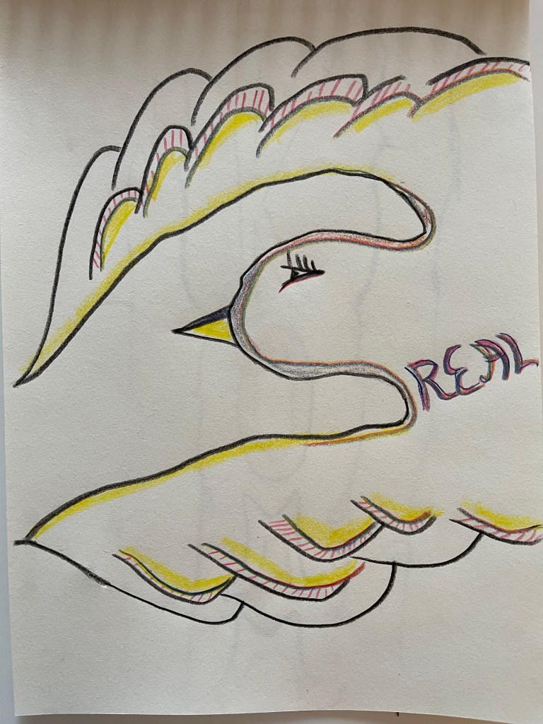 My daughter gave me a drawing challenge. The first step is to draw the contour of your hand. You can put your hand in any position on the paper and then use a pencil to follow the contour of your hand. The next step is to draw something out of that contour. I accepted the challenge, and decided to do a C with my hand, the C of Creal.